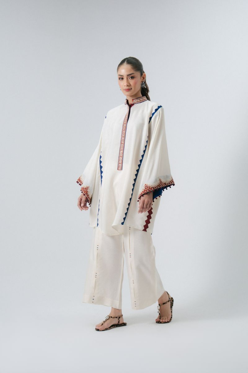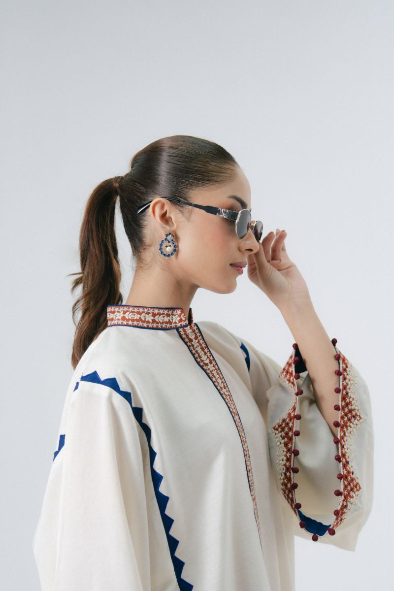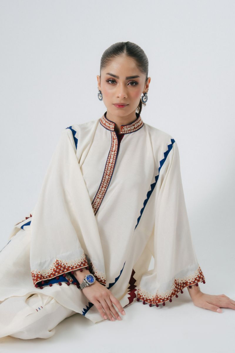 Whether you're heading to a garden brunch, a laid-back gathering, or simply soaking in the summer breeze, this cord set  is your go-to for timeless elegance and effortless style. Crafted from cotton net,  with accenuated embrodiery in contrasting shade of maroon and navy blue