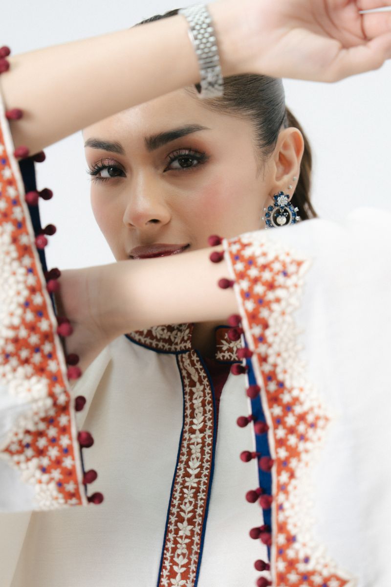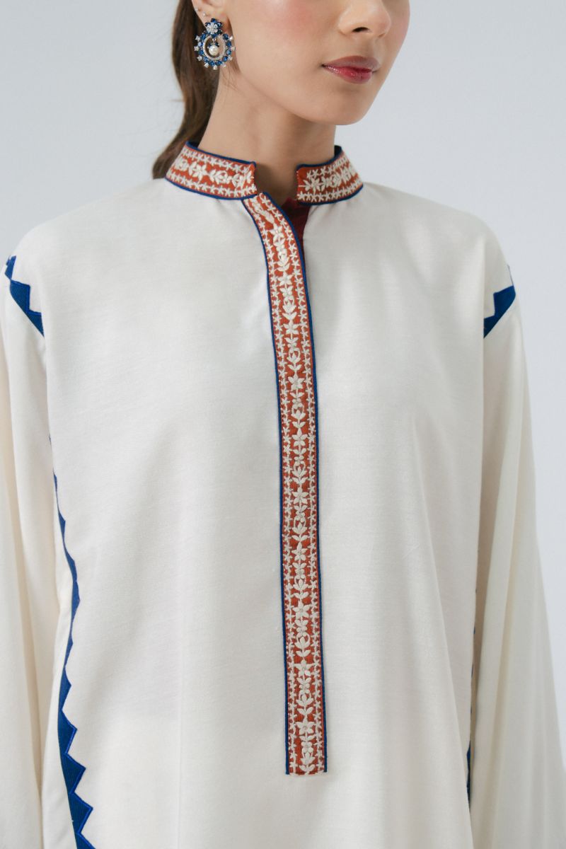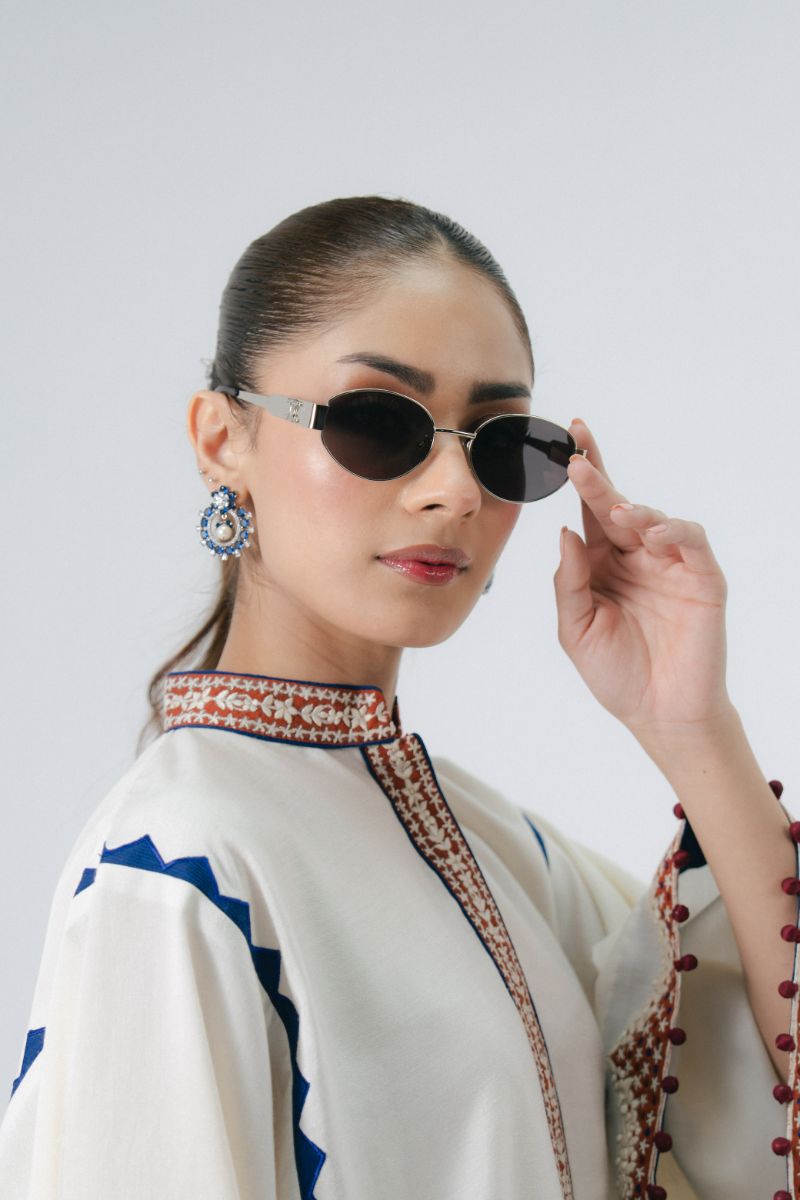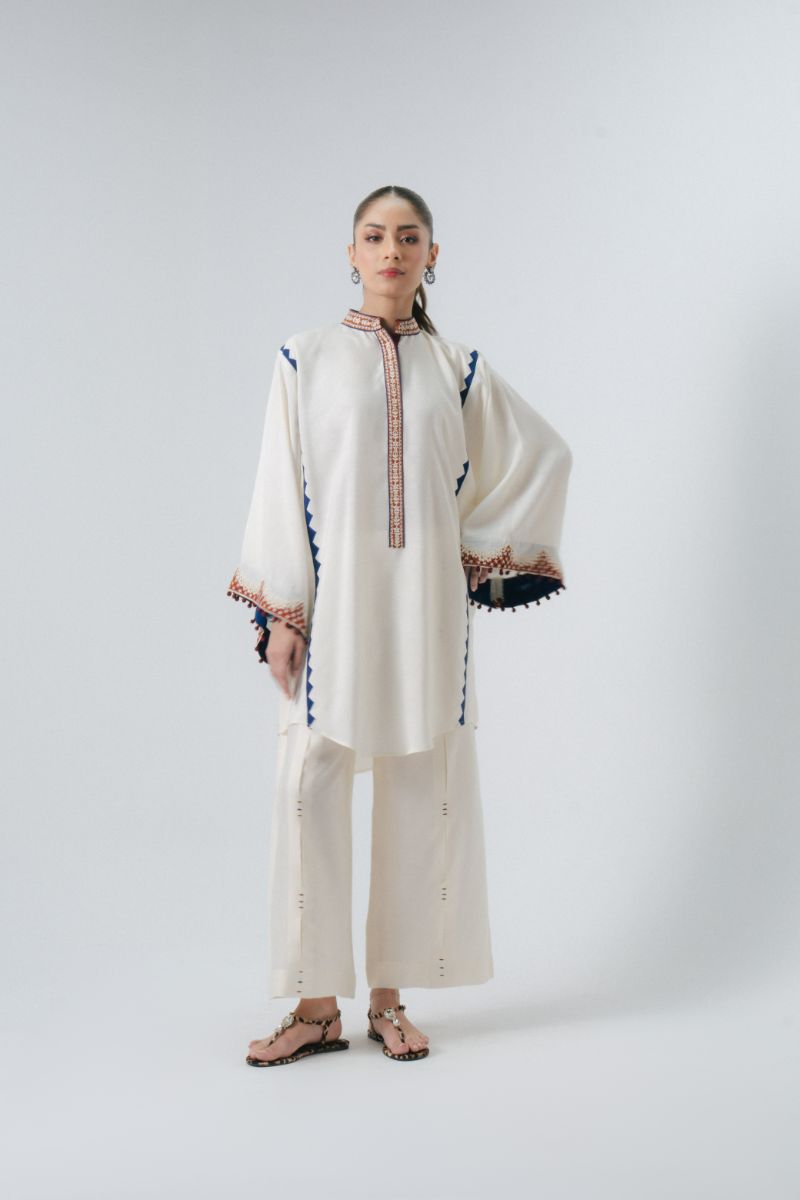 Whether you're heading to a garden brunch, a laid-back gathering, or simply soaking in the summer breeze, this cord set  is your go-to for timeless elegance and effortless style. Crafted from cotton net,  with accenuated embrodiery in contrasting shade of maroon and navy blue